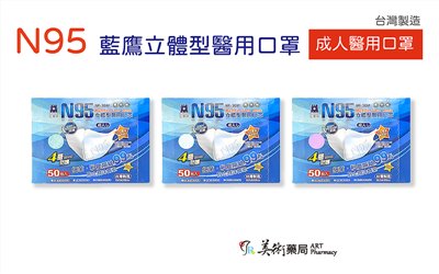 藍鷹牌 N95 立體型 成人醫用口罩 50入/盒 亦有石墨烯系列商品 多重防護 聊聊詢色選色 美術藥局|官方公司貨
